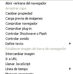 Dreamweaver simplifica el proceso de utilización de funciones JavaScript estándar proporcionado comportamientos (rutinas de código JavaScript ya escrito que puede incorporar con facilidad en el sitio Web). Un comportamiento combina un evento del usuario (como por ejemplo, mover el cursor sobre un botón de gráfico en el navegador) con una acción o serie de acciones que se producen como resultado del evente.